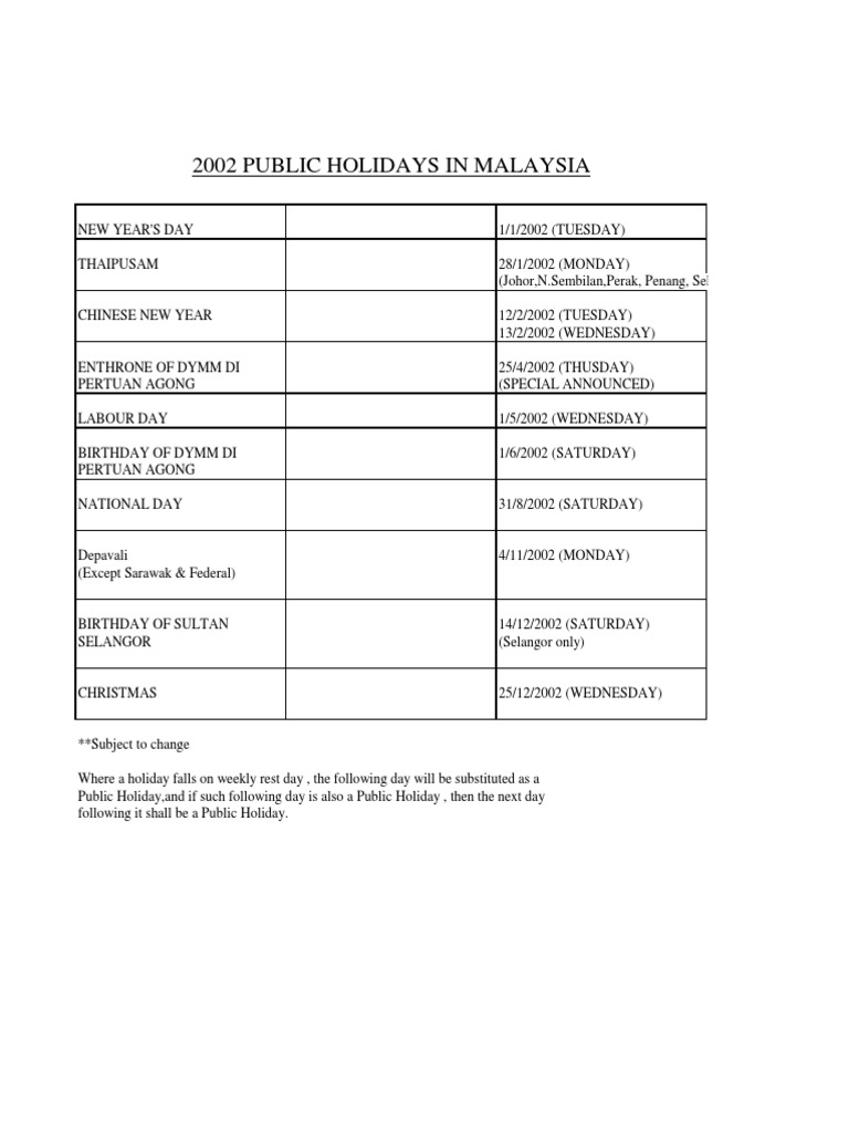 National except johor, kedah, melaka, negeri sembilan, sabah & sarawak. These dates may be modified as official changes are announced, so please check back regularly for updates. Johor, kuala lumpur, negeri sembilan, penang, perak, putrajaya & selangor. It borders selangor on the north, pahang in the east, and melaka and johor to the south. Nigeria begins public holidays act amendments process.