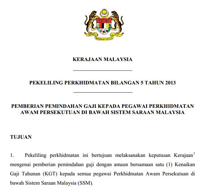 Dengan implikasi kewangan sebanyak rm1.46 billion mulai julai 2018. Berikut adalah tarikh pembayaran gaji bagi tahun 2017 yang dikongsikan dari surat pekeliling akauntan negara malaysia bil 3 tahun 2017. Kenaikan gaji penjawat awam mulai 1 julai 2018 | adakah anda kakitangan awam dan pesara kerajaan? Berita baik buat anda dimana menerusi kenyataan dari perdana menteri malaysia, datuk seri najib tun razak telah mengumumkan kenaikan gaji tahunan (kgt). Surat pekeliling akauntan negara malaysia (spanm) bil.