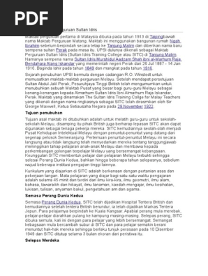 First established in 1922 as a teachers college, it is one of the oldest functioning sitc also came to be officially known by its malay name, maktab perguruan sultan idris ( _en. اونيۏرسيتي ڤنديديقن سلطان إدريس is a public university in the town of tanjung malim, perak in malaysia. Sultan idris teaching college (sitc) ditukarkan namanya kepada maktab perguruan sultan idris (mpsi) dirasmikan pada 28 november 1922 oleh sir w. Sultan idris oktatási egyetem ( maláj : Sijil perguran asas psr ( pend.